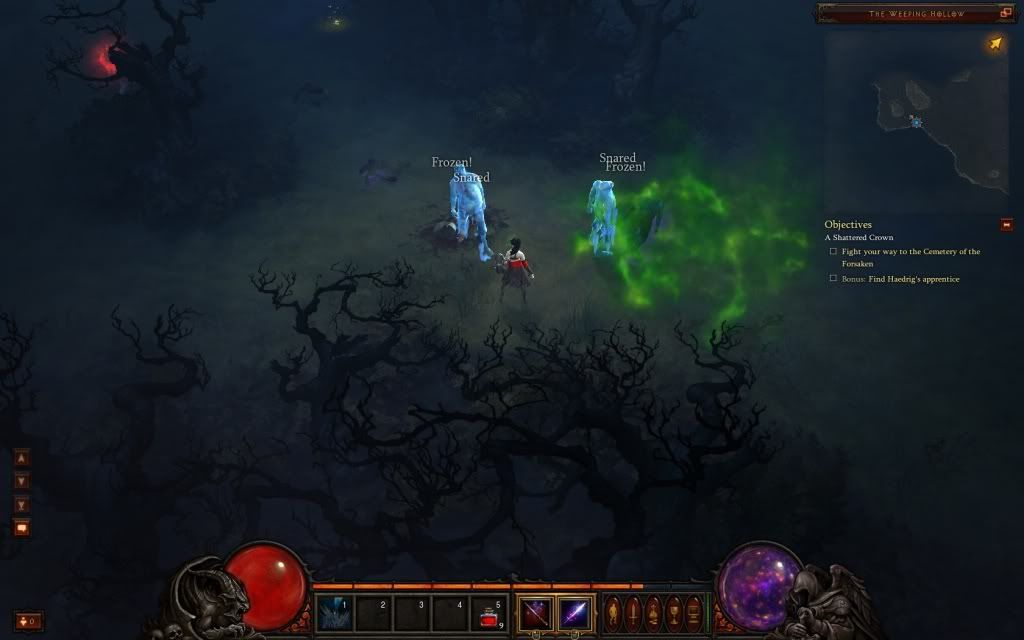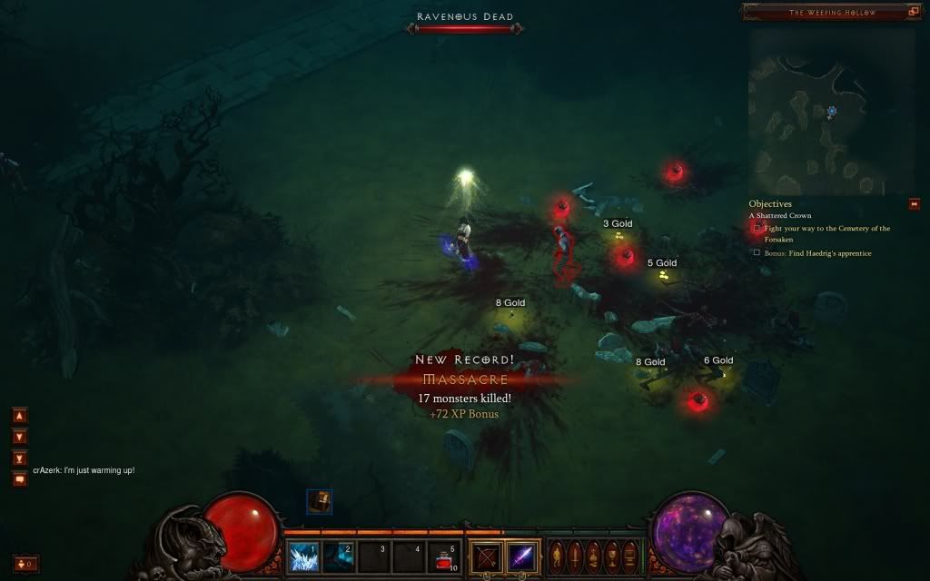 Monsters drop like flies, even the tougher ones just need minimum scoot and shoot micro. And with my CC abilities I don't even need to do that. (CC means Crowd Control, or abilities that slow/snare/freeze monsters to let you kite them)