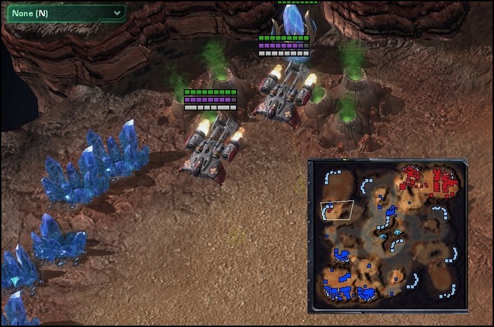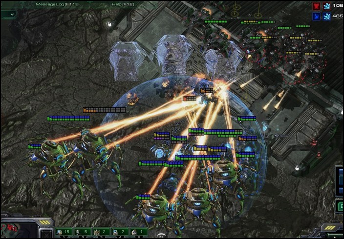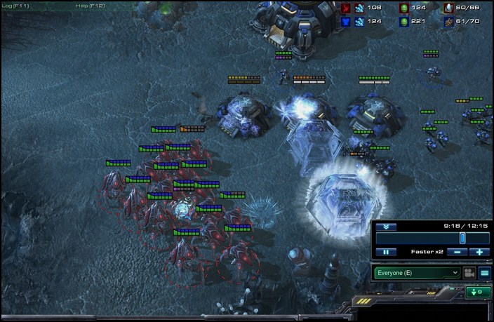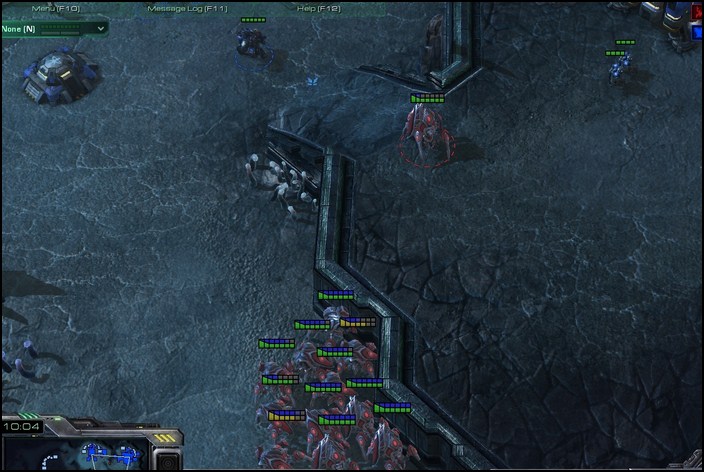 Lucky for me he does a 2 rax 1fac marine tank build as compared to a 1/1/1 build which i would have alot harder time stopping. I make him waste his scans on the DTs but still i'm unable to stop his push.