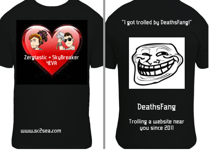 This will be the official SC2SEA Tee Shirt thread. Our store is opening soon and we should definitely have a tee shirt to go along with it. Feel free to post your designs you come up with, the skys the limit, so get creative! Also feel free to post it in whatever style you like, hoodie, jersey, tee shirt because the exact clothing hasn't been decided yet. Tee shirt is just the cheapest, lightest and most flexible option so I chose that as the default.Whether or not you wish to include name/race customisation depends on your design.