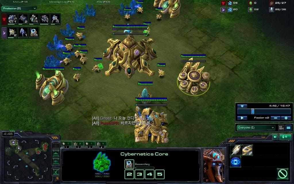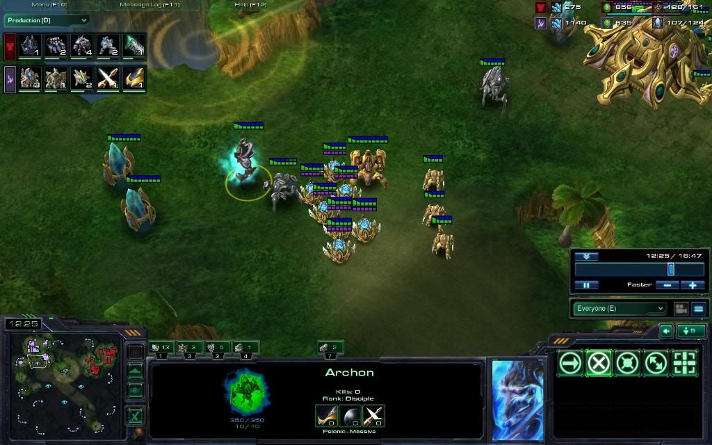 12:25 He's going for a double forge upgrade style that you did not notice with this scan but you saw something very important - the archon. By 9:04 the immortal + sentries should have prompted you to go for ghosts because generally a army with alot of immortals + sentries can be easily crippled by good emps! With the archon, it's a MUST to get ghosts or you'll be really behind.