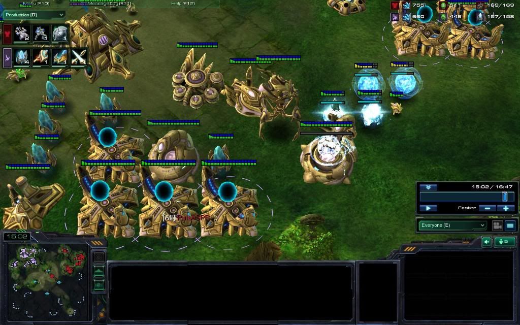 i was using zerg (my zvp has gotten quite good) had a super huge advatantage at the start vs tendersteak, but late game i cannot find any thing that can beat his army unit composition.