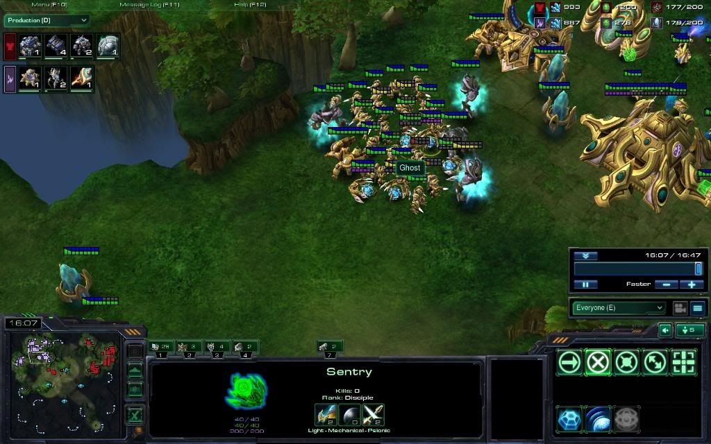 16:07 Finally a battle occurs and you pull off decent EMPs but you mismanaged your engagement + ghosts. You should have scanned the top before moving your ghosts in to EMP instead of moving up for vision before EMP-ing, you would've pulled off better EMPs and could have not lost the bulk of your ghosts! In this same picture, he's 2-2.