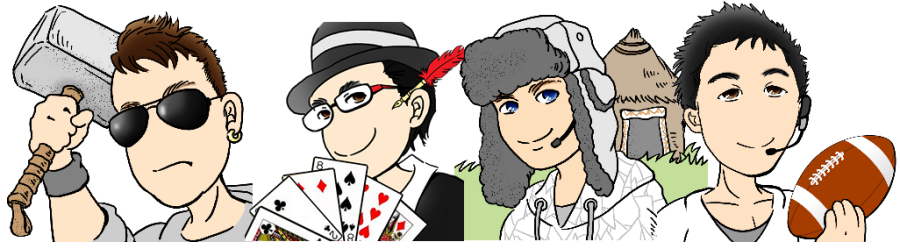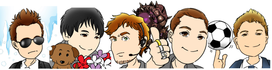 Frost the clan head with the "frost" effect, bakainu one half of the BSG head team (inu means dog in japanese), zergtastic next to him as his "other half" with the overlord referencing his infamous "overlord scouting cost" thread and the mic to signify his occasional casting. Eddie the GPD head with the gold, plat and diamond rings, and lastly paroxysm the CO head who well, is an avid soccer player. This one was especially hard since not many people knew that or knew what he looked like! Lennx brilliantly put it together through the process of elimination (and also saw his skype avatar lol)
