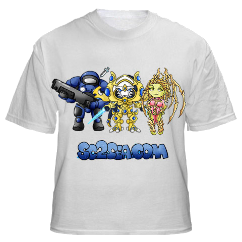 1. ChickN's shirt: Just looks like a really good standard sc2sea shirt, as it follows the same style as the banner, although it doesn't have the .com on it... Also, a lot of people say they don't like the cartoony font, so some people might not actually want to buy this one.