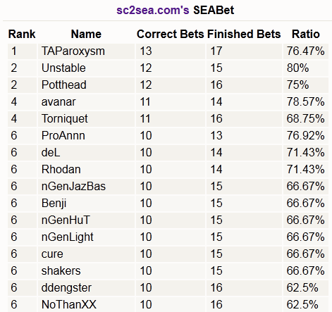 Seasons will last 2-3 months and you will be able to bet on everything imaginably possible from CO matches, eventual winners, grude matches, GSL matches etc! The SEABet main page can be accessed right here and has been added to the Features menu in the navbar on top. At the end of the season, the final winner of SEABet will win the "Nazmus's Prophecy" achievement. Trivia, veteris's first name is Nazmus! Also remember you must be logged in to use SEABet! Look for more bets in the news posts in future, the chatbox and of course the main SEABet page which is the best place to look.